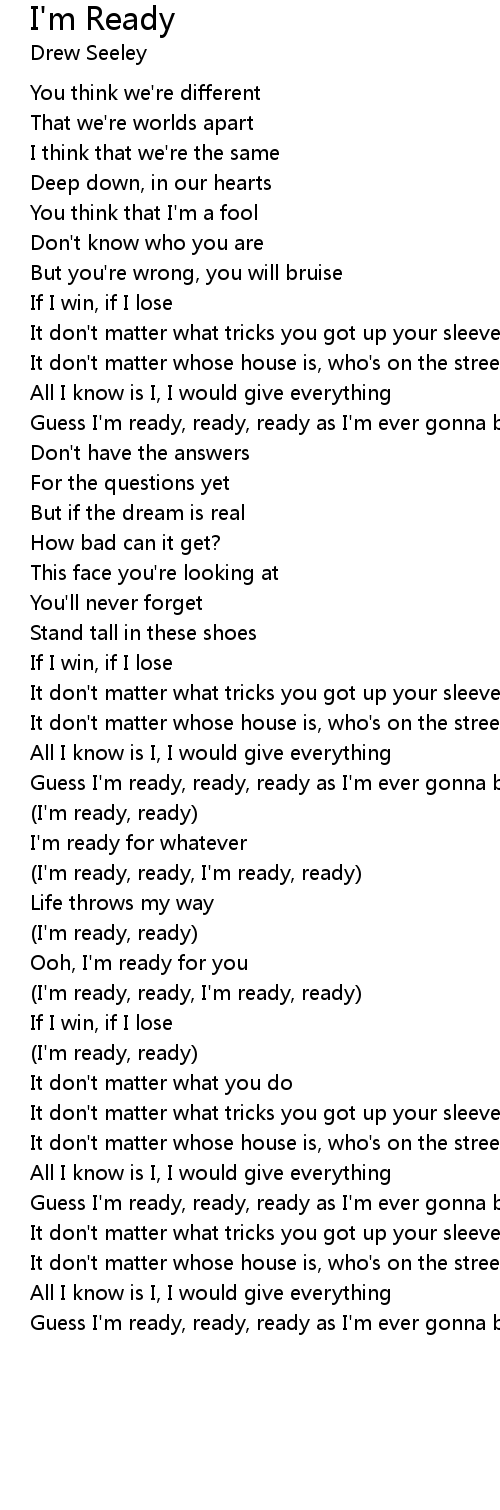 Guess I'm ready, ready, ready as I'm ever gonna be |