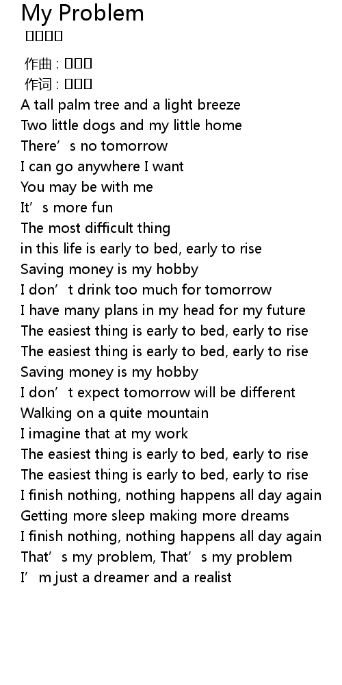 | [03:22.55] | That' s my problem, That' s my problem |