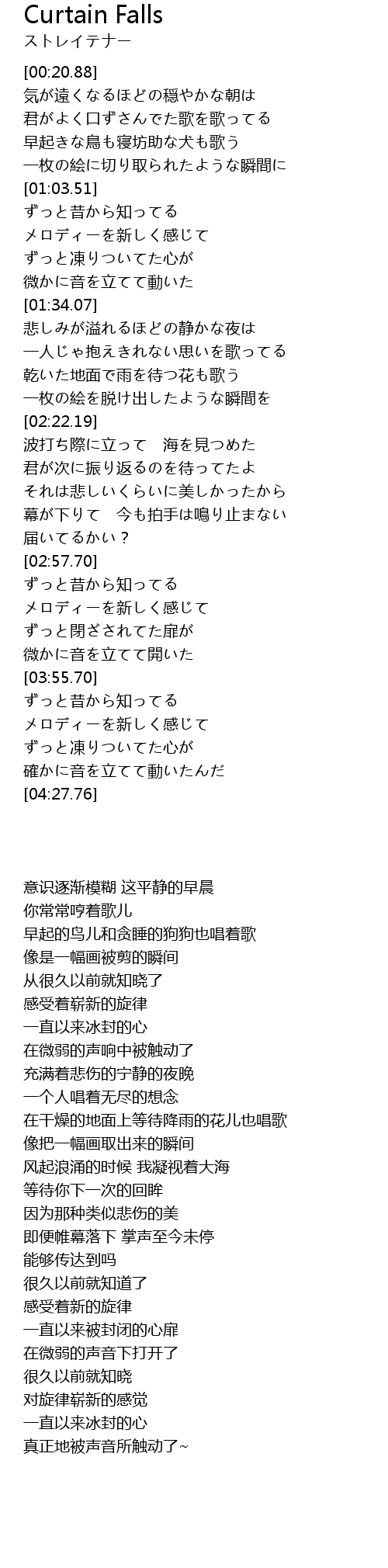| [02:46.50] | 幕が下りて 今も拍手は鳴り止まない |