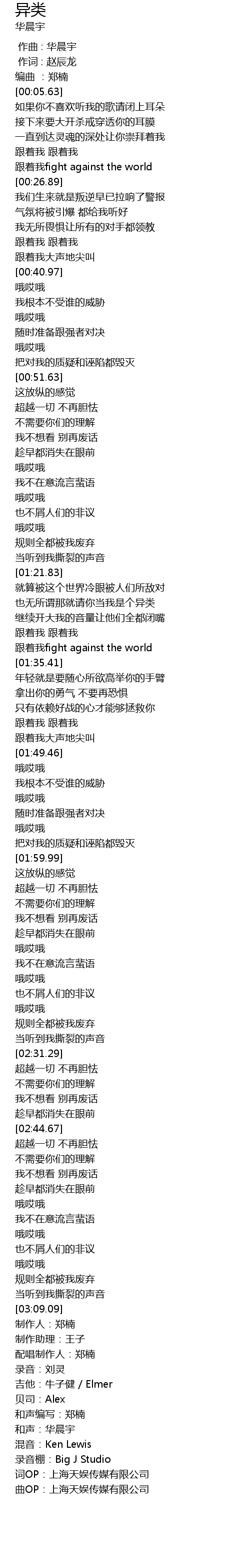 | [01:24.69] | 也无所谓那就请你当我是个异类 |
