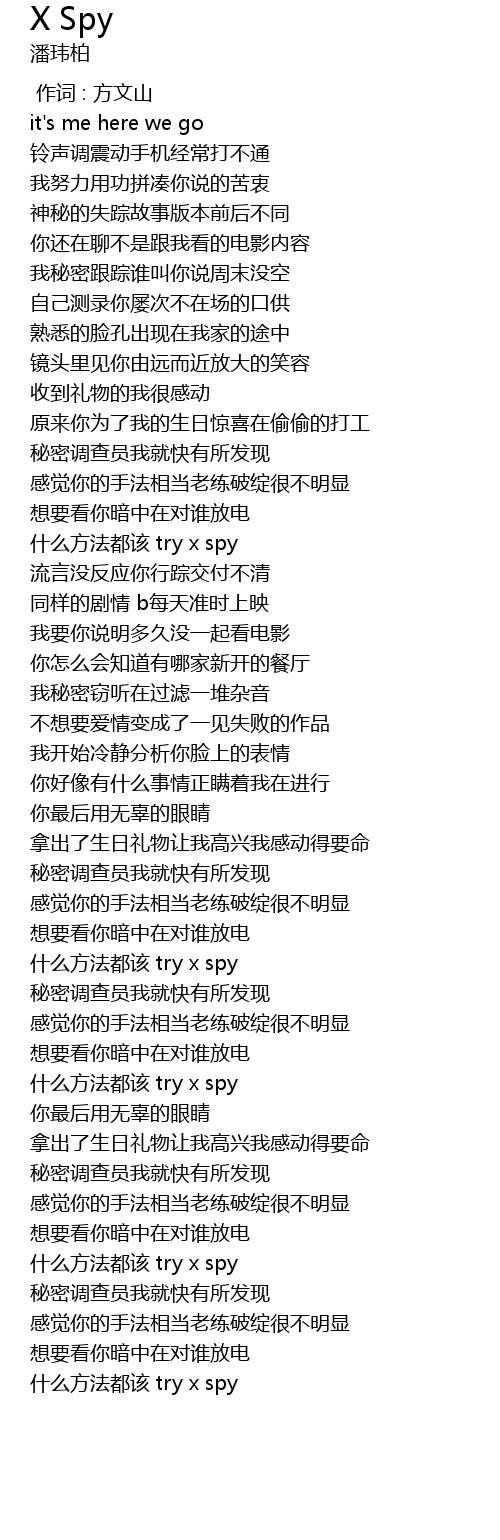 | [03:01.69] | shén me fāng fǎ dōu gāi try x spy |