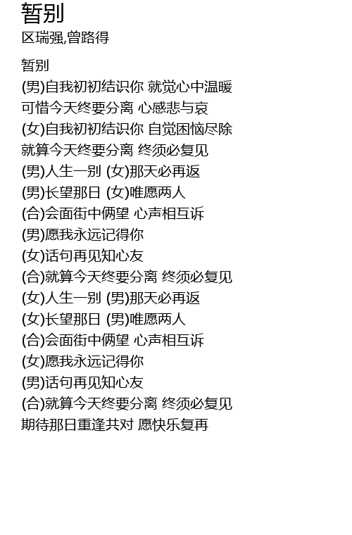 | [00:00.78] | 暂别 |