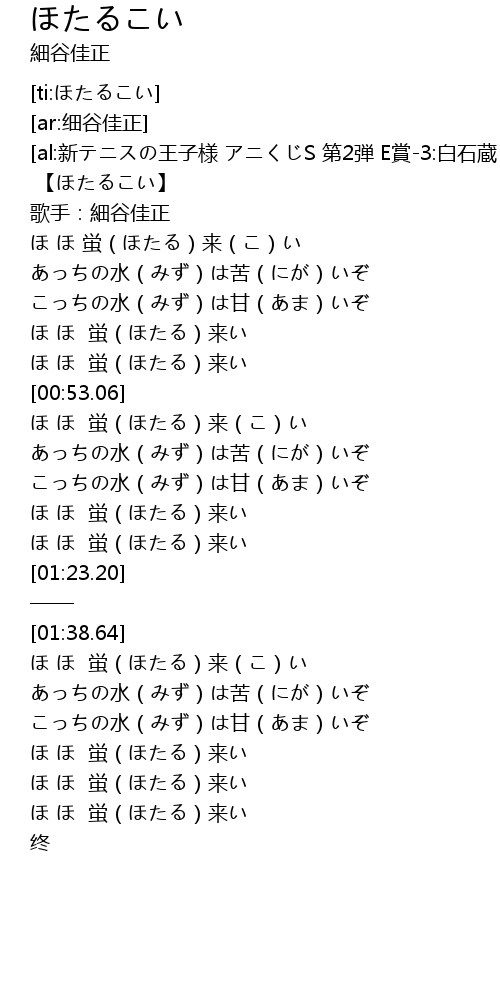 | [01:58.31] | ほ ほ 蛍(ほたる)来い |