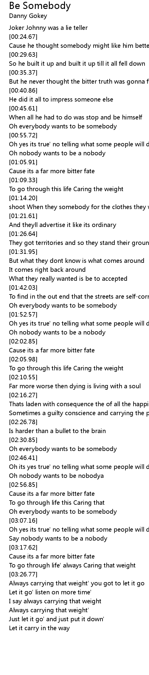 Oh everybody wants to be somebody |