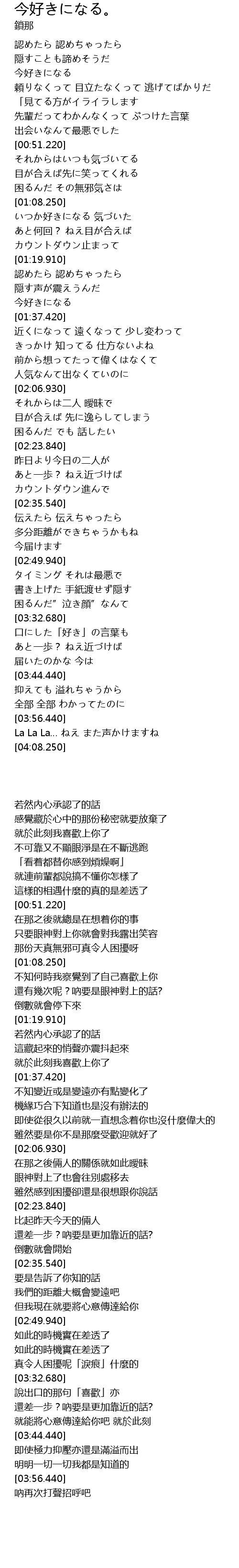 | [03:32.920] | 口にした「好き」の言葉も |