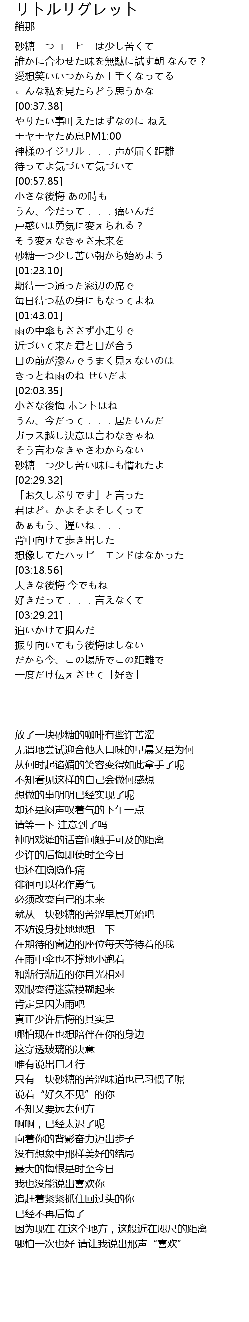| [01:19.31] | 砂糖一つ少し苦い朝から始めよう |
