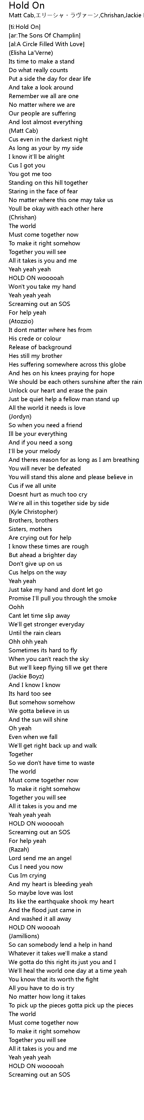 [ti:Hold On] |