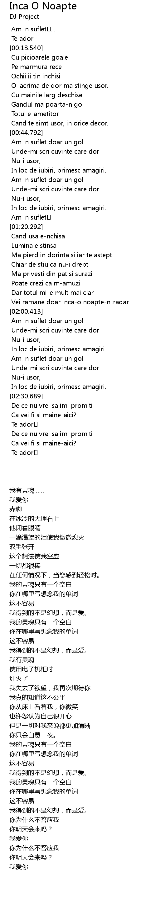 | [02:19.544] | Unde-mi scri cuvinte care dor |