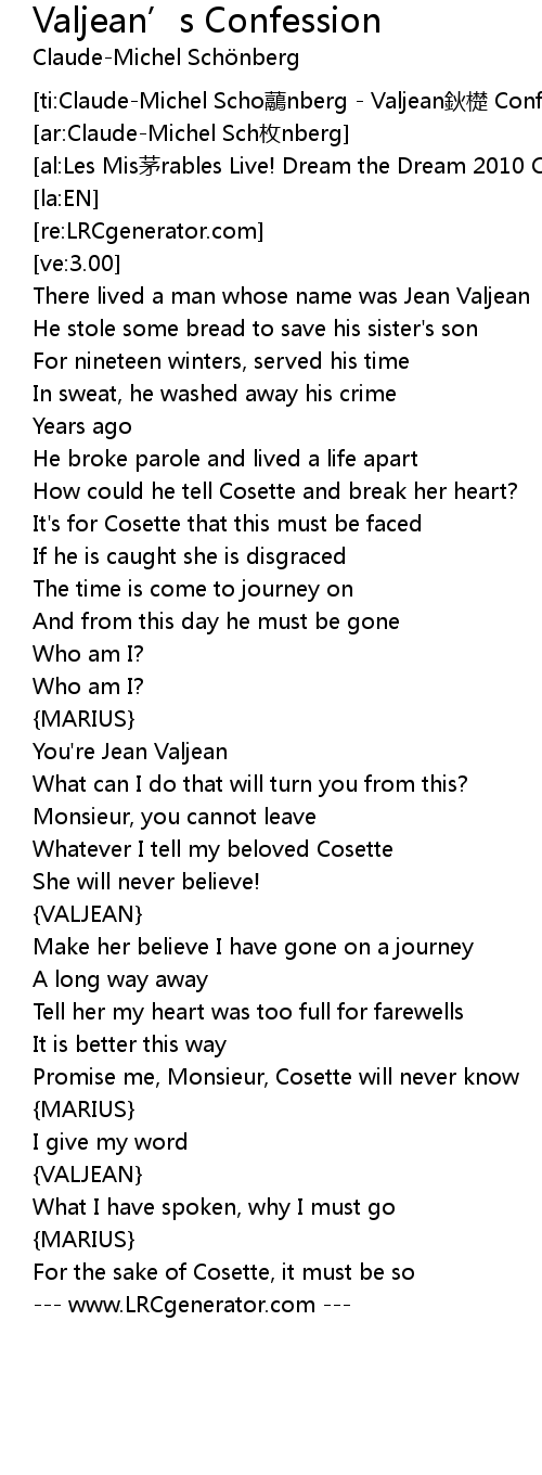 | [ti:Claude-Michel Scho虉nberg - Valjean鈥檚 Confession] | |