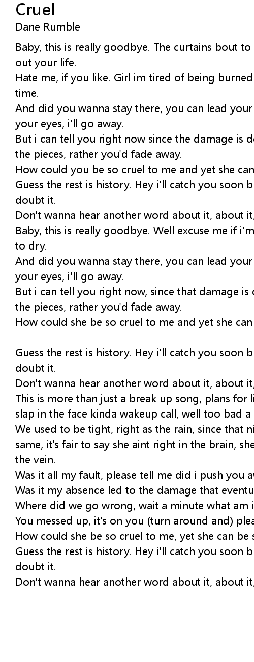 Guess the rest is history. Hey i'll catch you soon but i doubt it, i doubt it, i doubt it. |
