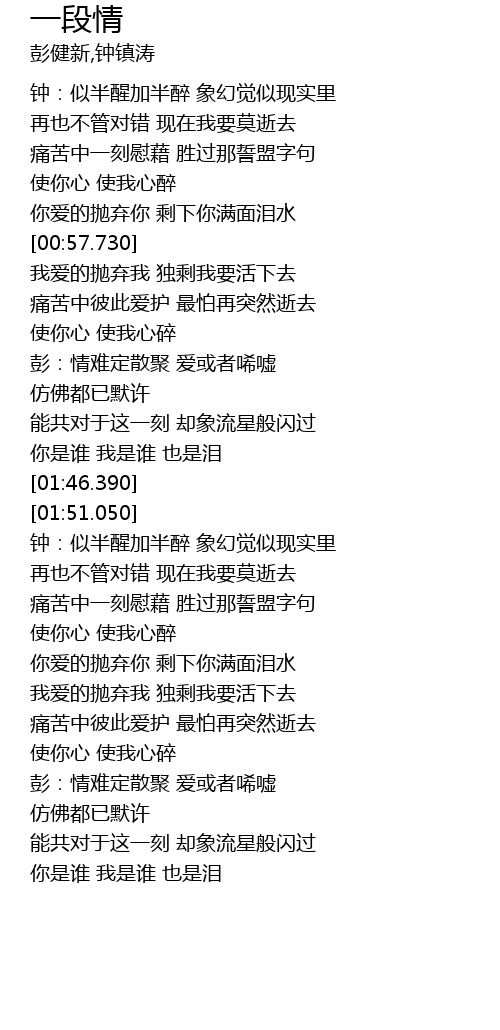 | [00:38.600] | 痛苦中一刻慰藉 胜过那誓盟字句 |