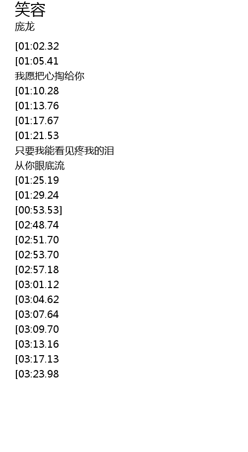 | [02:18.45][01:02.32][00:22.34] | 从来没有过的笑容 |