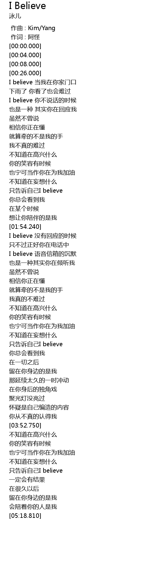 | [03:09.110] | 只告诉自己I believe |