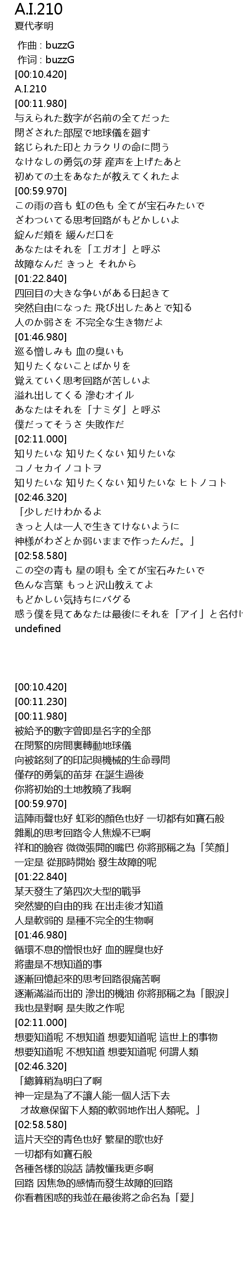 | [00:11.230] | A.I.210 |