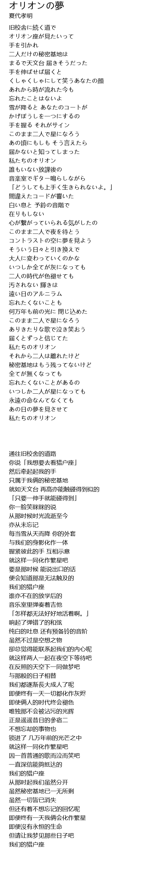 Song オリオンの夢