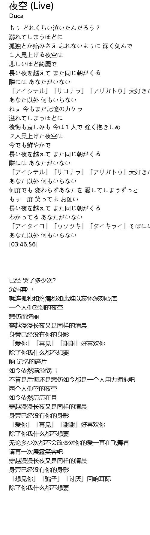 | [02:41.32] | 「アイシテル」「サヨナラ」「アリガトウ」大好きだよ |