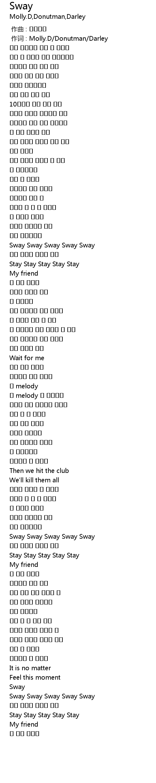 | [00:01.00] | 作词 : Molly.D/Donutman/Darley |