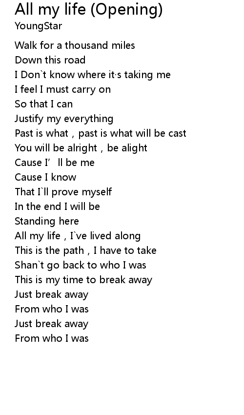 | Song | All my life (Opening) |