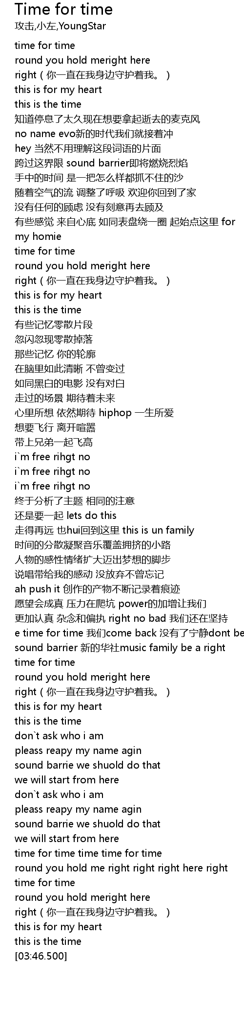 | [02:32.980] | e time for time wo men come back mei you le ning jing dont be quiet |