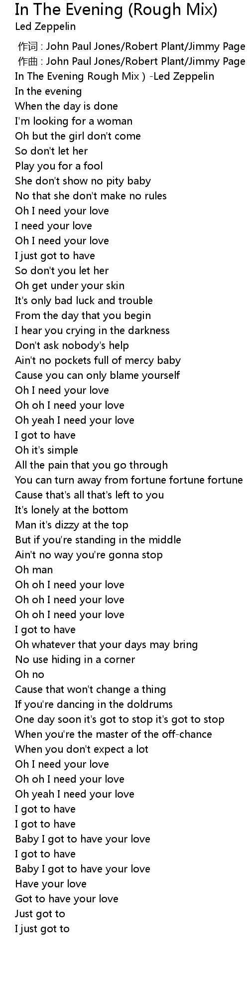 | [00:00.000] | 作词 : John Paul Jones/Robert Plant/Jimmy Page |