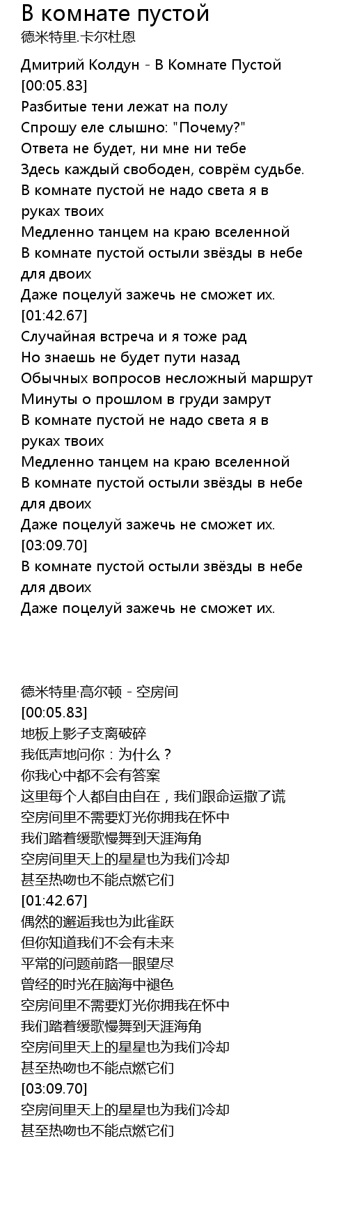 В комнате пустой не надо света я в руках твоих |