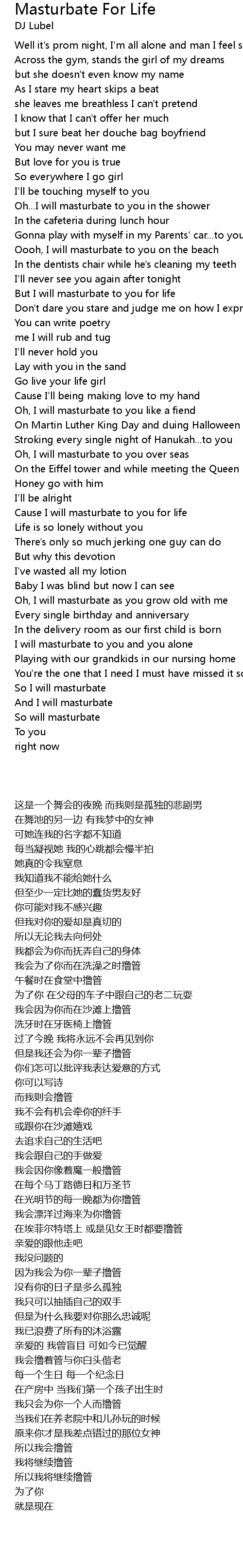 But I will masturbate to you for life |