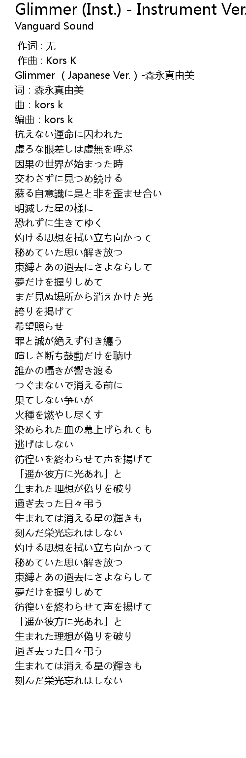 | [00:00.391] | Glimmer (Japanese Ver.)-森永真由美 |