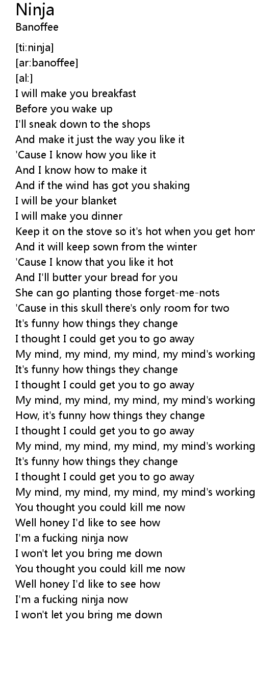 | [02:39.08] | My mind, my mind, my mind, my mind's working against me |
