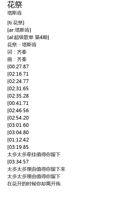 | [00:01.40] | 花祭 - 塔斯肯 |