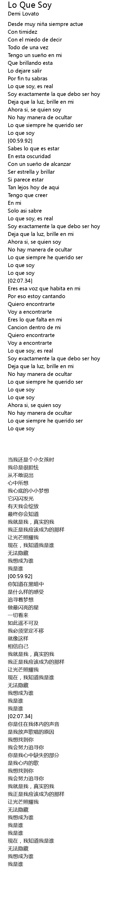 | [00:34.90] | Soy exactamente la que debo ser hoy |