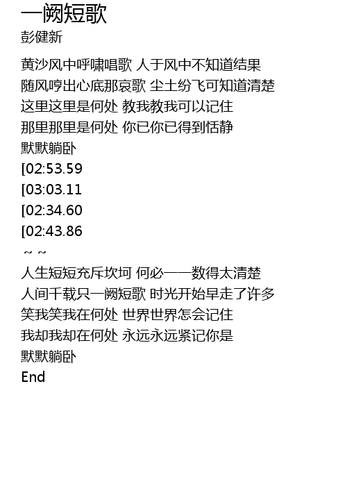 | [03:31.48][02:53.59][02:15.50][00:52.67] | 光阴去勿勿 空间里不肯安坐 |