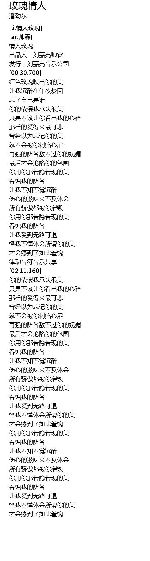 | [00:39.130] | hong se mei gui ying chu ni de mei |