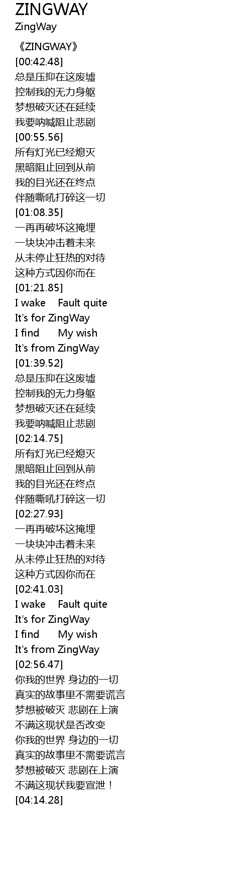 | [00:01.09] | 《ZINGWAY》 |
