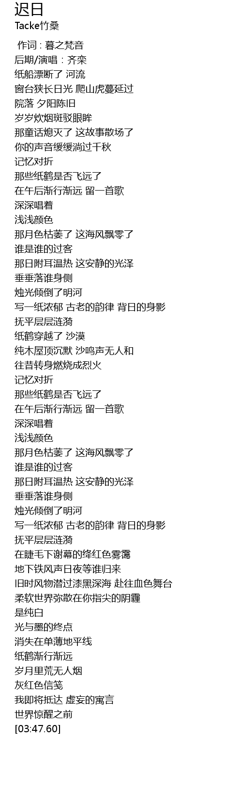 | [03:25.83] | 纸鹤渐行渐远 |