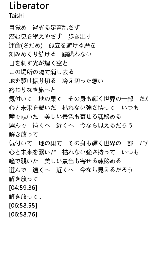 | [04:24.24] | 気付いて 地の果て その身も輝く世界の一部 だから |