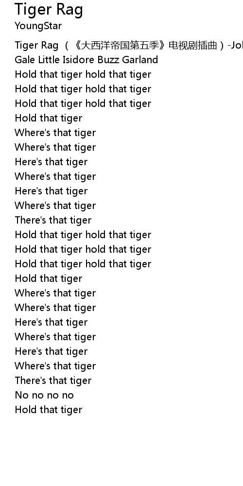 | [00:00.590] | Tiger Rag dà xī yáng dì guó dì wǔ jì diàn shì jù chā qǔ Johnny Gale Little Isidore Buzz Garland |