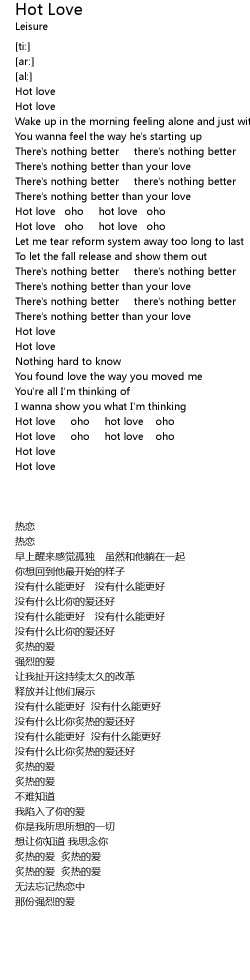 | [00:17.78] | Hot love |