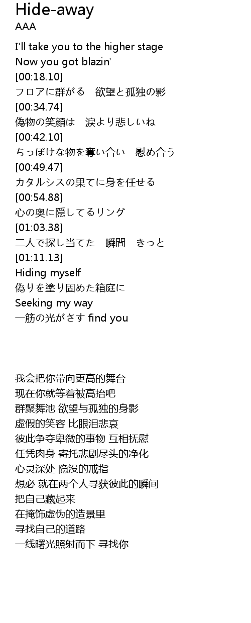 | [00:43.31] | ちっぽけな物を奪い合い 慰め合う |
