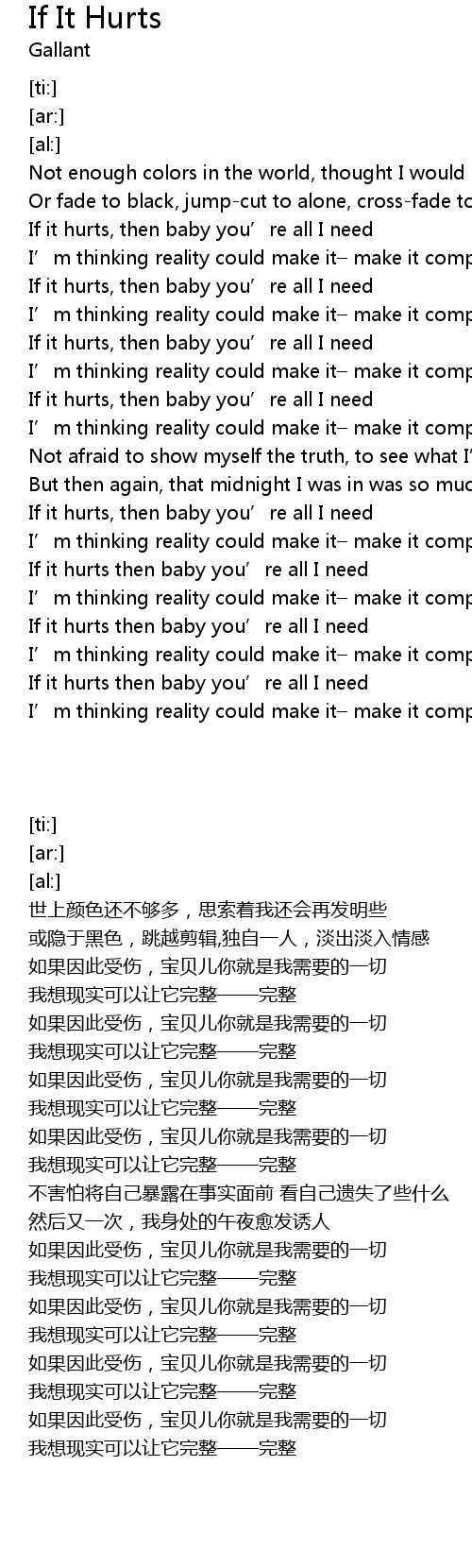 | [02:42.24] | If it hurts, then baby you’re all I need |
