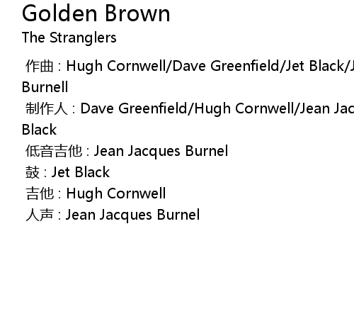 | [00:00.000] | zuo qu : Hugh Cornwell Dave Greenfield Jet Black JeanJacques Burnell |