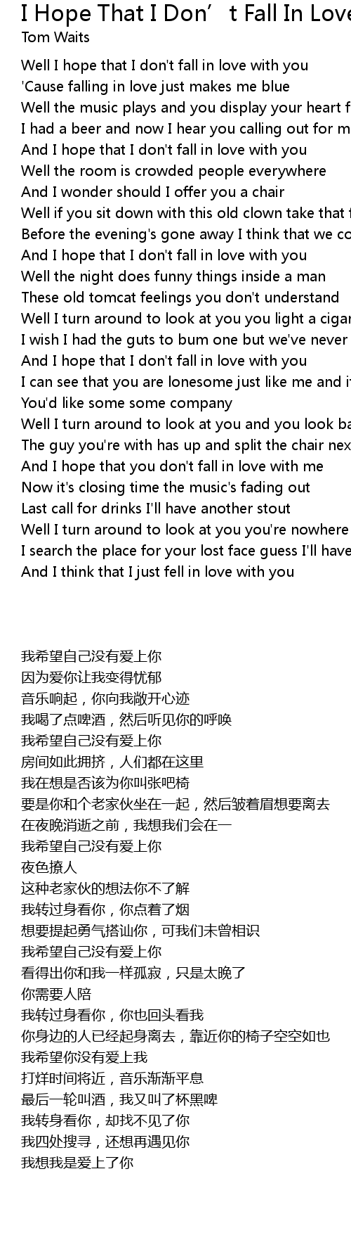 And I hope that I don't fall in love with you |