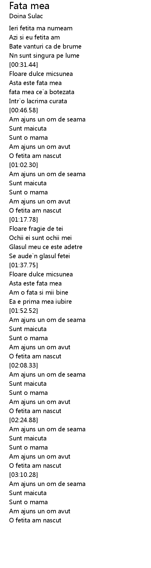 | [03:01.36] | Sunt o mama |
