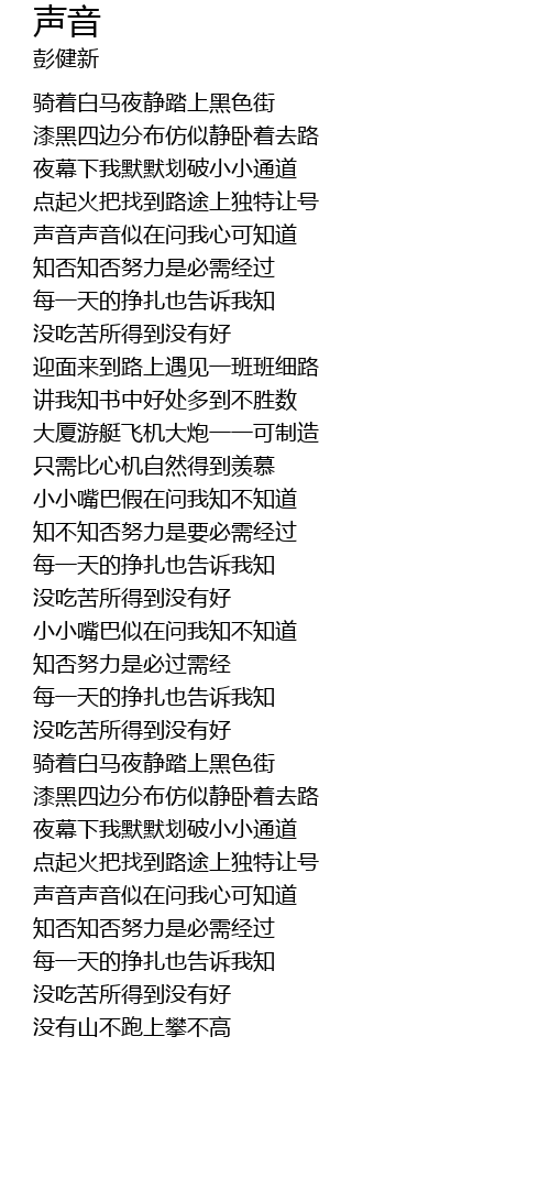 | [02:43.03] | méi yǒu shān bù pǎo shàng pān bù gāo |