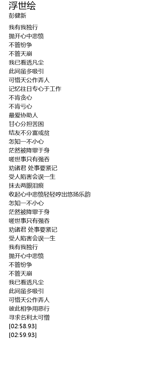 | [02:35.91] | wǒ yǐ kàn tòu fán chén |