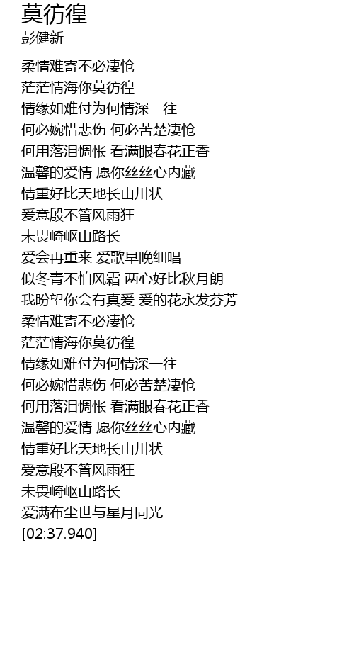 | [01:38.650] | 茫茫情海你莫彷徨 |