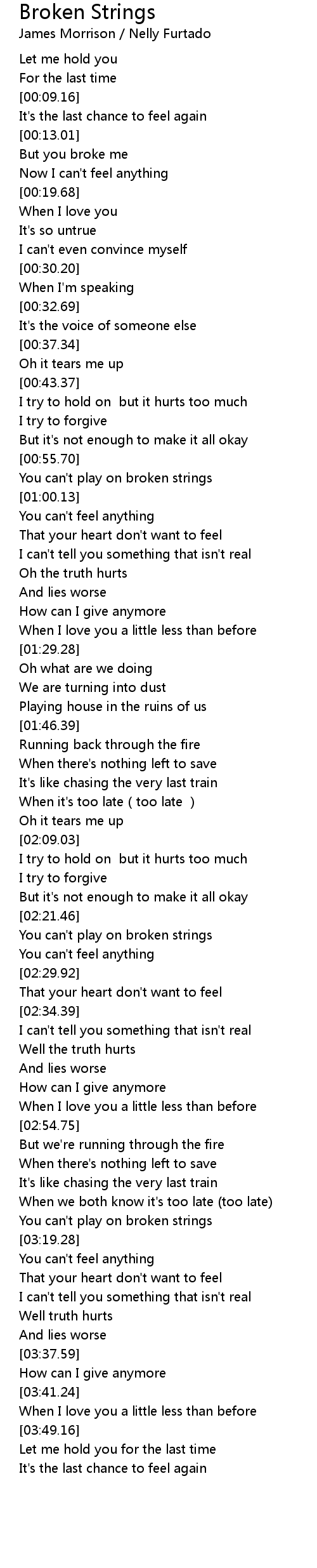 | [03:15.95] | You can't play on broken strings |