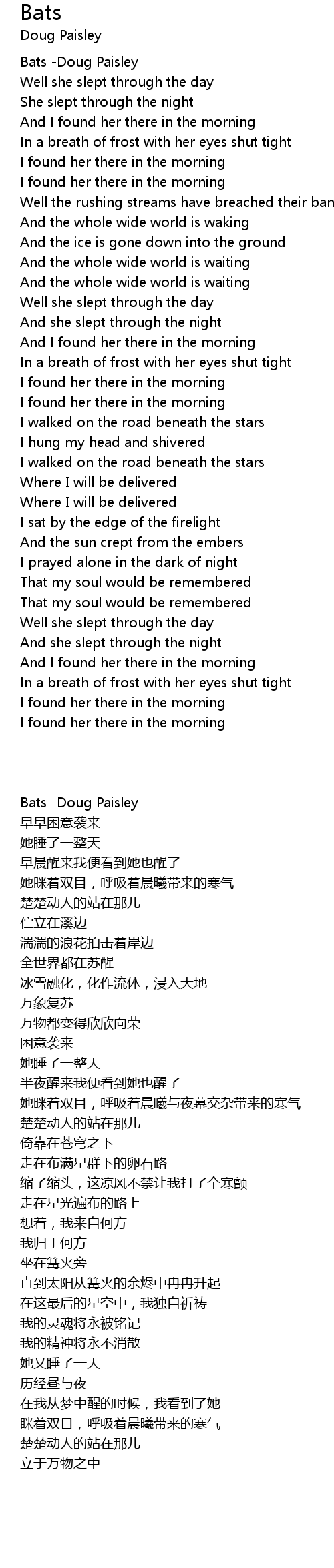 Bats -Doug Paisley |