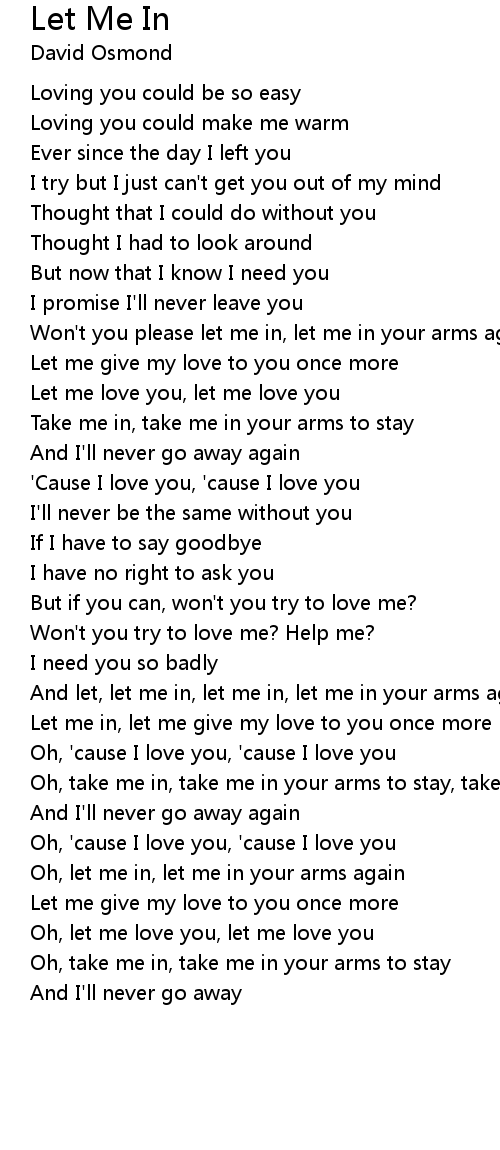 Won't you please let me in, let me in your arms again |