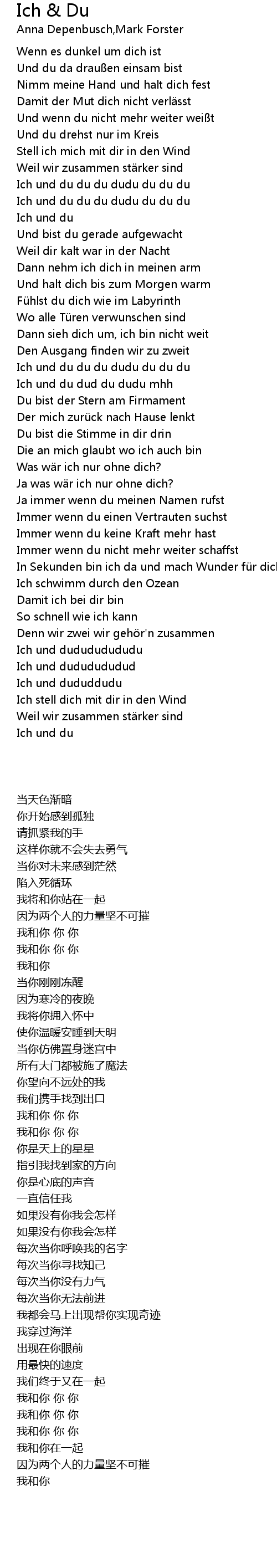 | [00:42.92] | Ich und du |