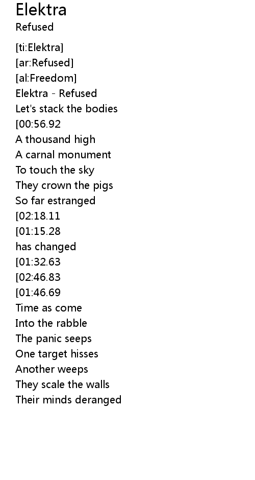 | [01:41.03][01:46.69][01:48.29][02:49.64][02:55.28][02:56.79] | There's no escape |